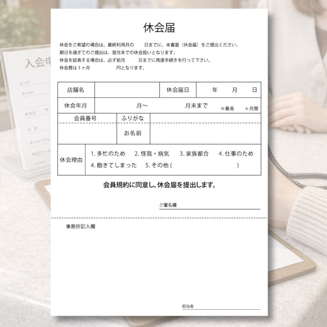・休会届テンプレート(A4/1枚)