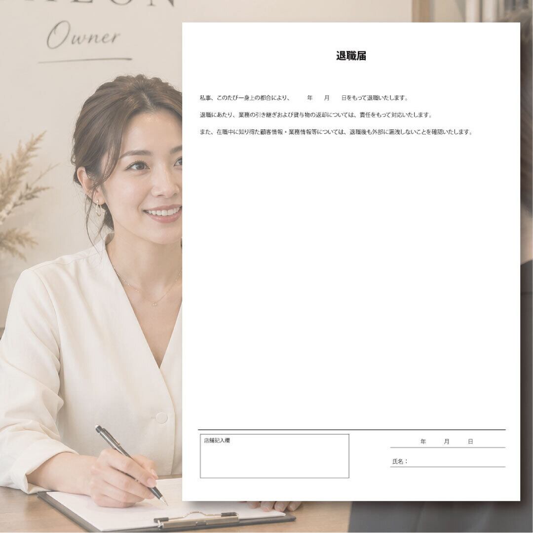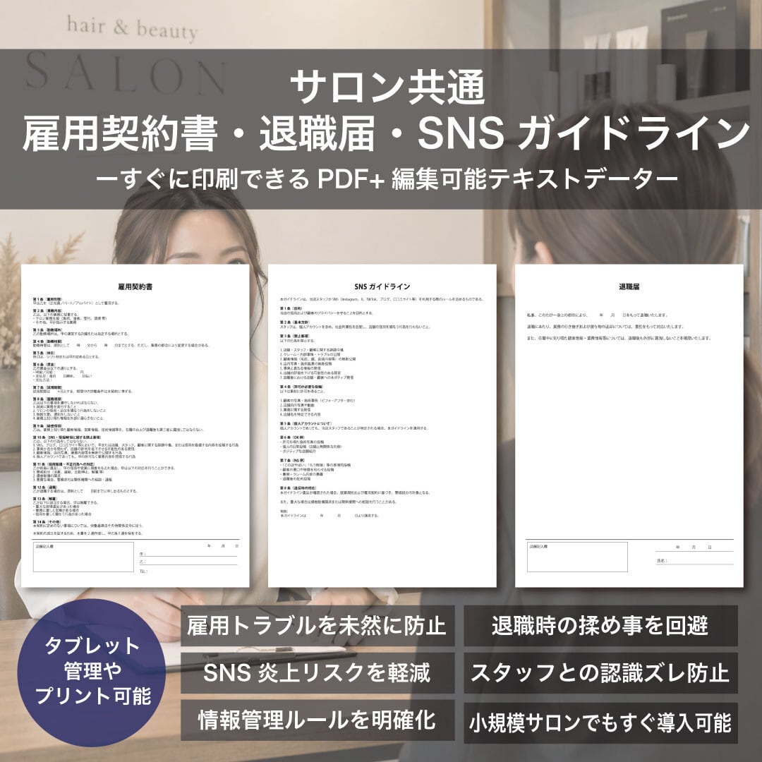 サロン雇用書類3点セット|雇用契約書・退職届・SNSガイドライン